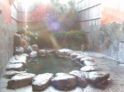 露天風呂♪勿論、ケチな私なので『無料貸切』です(笑)露天風呂は2種類あるそうですが、宿泊数が少ない時は片方しか空けないみたいです( ┰_┰)和洋の2種類の露天風呂・・・両方入りたかった。・・・ちなみに、予約時の写真では凄く広く見えたのですが・・・。。。o(゚^ ゚)ウーン大人5人位が限度かな?って感じの小さなお風呂でした(ヘ;_ _)ヘ ガクッ 周りは全て壁に囲まれていて、景色も空しか楽しめません。内湯は、3人が限度って感じかな・・・でも、『アロエ塩』でボディマッサージ、超良かったです(゚▽゚*)ニパッ♪